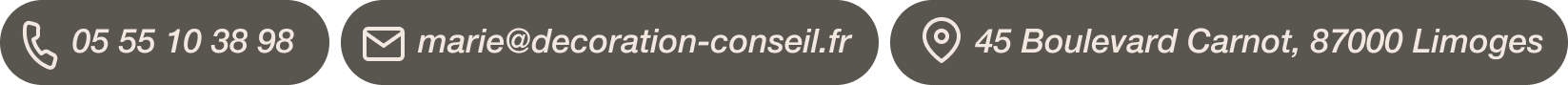 Décoratrice diplômée, installée à Limoges depuis 2002, j’accompagne particuliers et professionnels avec passion et énergie.